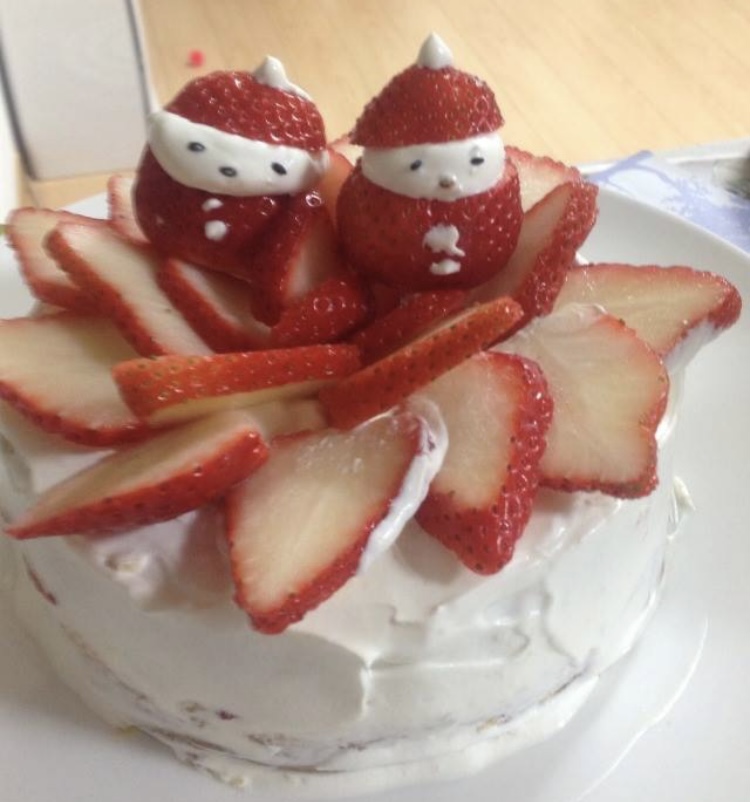 生クリームに砂糖を20グラム入れてホイップしたクリームは甘すぎず、あっさりしていてペロリと食べられるケーキになりました!